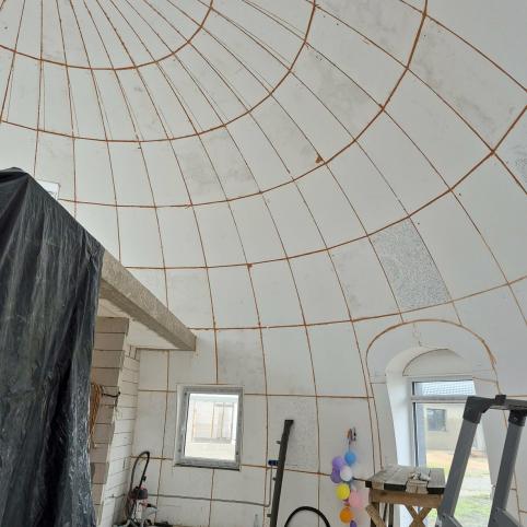 Pirmiausia užsisakė kupolo detalių – polistireninio putplasčio elementų – komplektą vienuolikos metrų skersmens ir pusseptinto metro aukščio namui.
