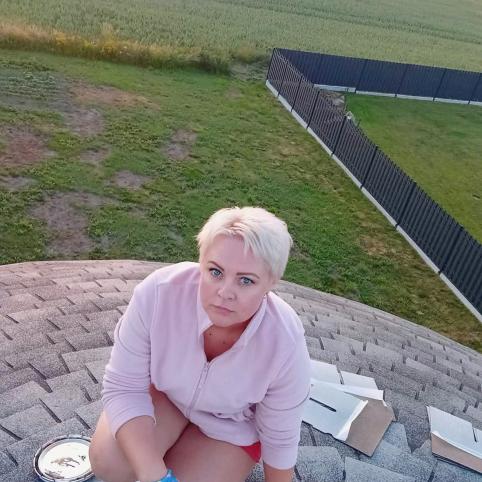 Vyras patenkintas, kad darbuose nuo jo neatsilieka žmona. Jurgita ir stelažus statė, ir benzininiu pjūklu pjovė, ir keliasprindes vinis kalė.