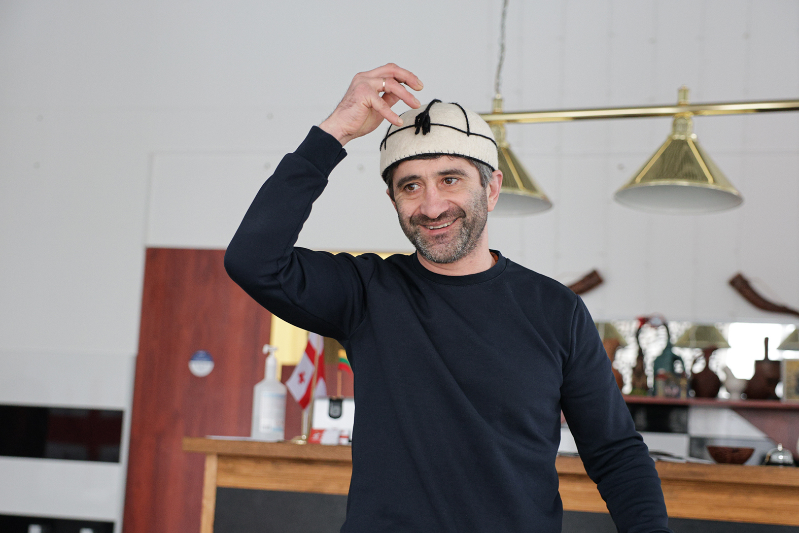 Bekalbėdamas Revaz užsideda kepurę iš Svanetijos. Virvelė su kutu ne šiaip – jei ji dešinėje pusėje, vadinasi, vyras vedęs, jei kairėje – nevedęs. Kepurė taip susilenkia, kad iš jos net galima atsigerti vandens.