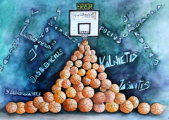 Ryškiausia piešinio dalis — jo apačioje pavaizduoti daugybė krepšinio kamuolių, o viršum — kompiuterininkams suprantamas žodelis „eror“. “Tai reiškia, kad yra tiek daug tiksliai įmestų kamuolių, kad krepšis perkraunamas“, — motyvavo piešėja.