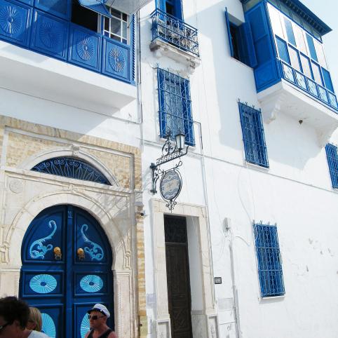 Ekskursiją pradedame nuo senojo Sidi Bou Said miestelio. Tipiški balti andalūzietiško stiliaus namai su mėlynomis durimis ir langinėmis. Siauras gatveles "okupavę" prekiautojai suvenyrais. Jie palyginti kultūringi. Negriebia už skverno, jeigu eini pro šalį. Tačiau, jeigu susidomi kokiu daiktu, derėsis tol, kol įpirš. Už pliušinį didelį kupranugarį prekiautojas prašo 45 dinarų. Nusideriu iki trisdešimties.