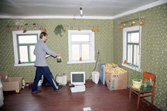 Tado gyvenimas — viename kambaryje. Ant grindų patiestas čiužinys, padėtas kompiuteris, stovi dvi kėdės, ant jų — vazonai su kviečių želmenimis, į sieną atremta gitara, kampe — obuolių dėžė, raugintų kopūstų kibiriukas, ant palangės — mikseris. Štai ir visi jauno vyro daiktai.