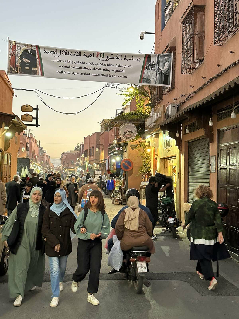 80 tūkstančių gyventojų turinčio miesto trauka – Medina – tradicinis senamiesčio centras. Jį sudaro trys pagrindinės gatvės ir daugybė mažų gatvelių, kuriose įsipainiojus išėjimą rasti būtų nelengva. Vaikštinėjome įsidėmėdamos pagrindinę Medinos aikštę, kad vis į ją sugrįžtume. Medinoje įsikūrusiose kavinėse ir restoranuose taurės vyno išgerti nepavyks – čia alkoholiniais gėrimais neprekiaujama.