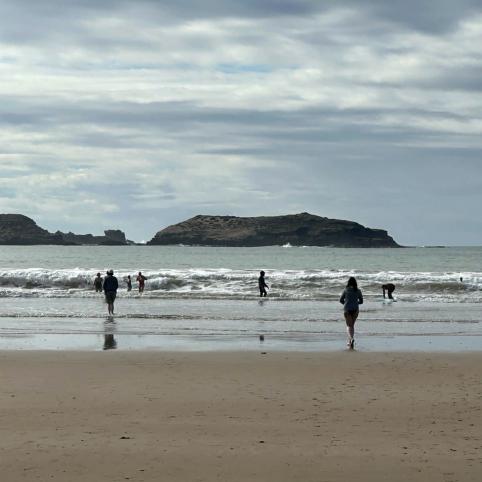 Atvykusios į kurortą viešbutyje sušokame į maudymosi kostiumėlius, vasarines sukneles ir pradedame pažintį su Atlanto vandenynu. Kirtusios kelią bei dar visai naują promenadą atsiduriame vandenyno pakrantėje. Tiesa, vanduo šiek tiek atslūgęs, tenka paėjėti. Šokame į šniokščiančias bangas, kurios, palyginti su mūsų Baltija, gerokai stipresnės. Ir vandens trauka atgal į gelmę stipresnė. Vandens temperatūra – kaip mūsų jūroje vasaros pradžioje, tačiau besimaudančių daugiau nesimatė. Didelės vandenyno bangos šiame kurorte yra banglentininkų rojus, tačiau tokiu metu ir šių entuziastų matėsi nedaug.