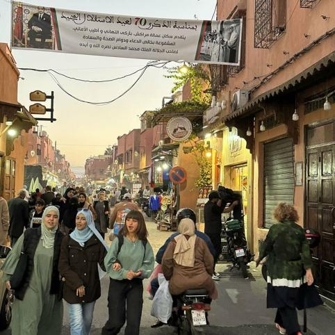 Pagrindinė miesto aikštė sutemus tampa didžiausia pramogų vieta. Joje susikuria daugybė žmonių ratelių, kurių centre – kažkas groja, dainuoja, pasakoja pasakojimus, užkalba gyvates. Parodęs į sėdintį vyruką priešais, pasidėjusį skaičiais išmargintą didžiulį popieriaus lapą, gidas šypteli: „Tai mūsų kazino.“