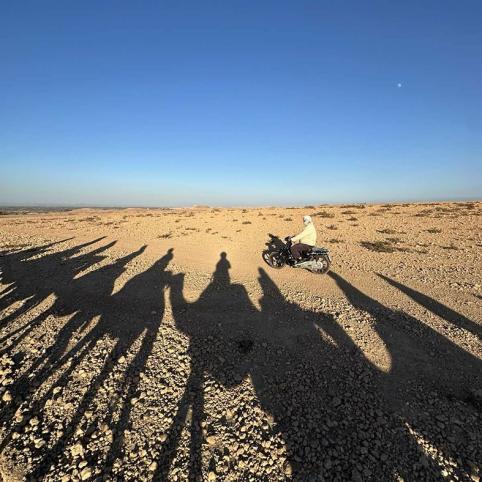 Kupranugariai surišti į vieną karavaną. Paeiliui po vieną ropščiamės ant parklupdytų kupranugarių balnų, šie stojasi. Pirma pakyla užpakalinėmis kojomis, po to – priekinėmis. Tai nėra malonus momentas, kai atrodo, kad nulėksi kūlversčiu nuo to keturkojo. Bet viskas gerai. Vietinis karavano „vairininkas“, atsigręžęs man pasako, kad mano kupranugarės vardas Šakira, ir uždainuoja: „Vaka vaka ė ė...“