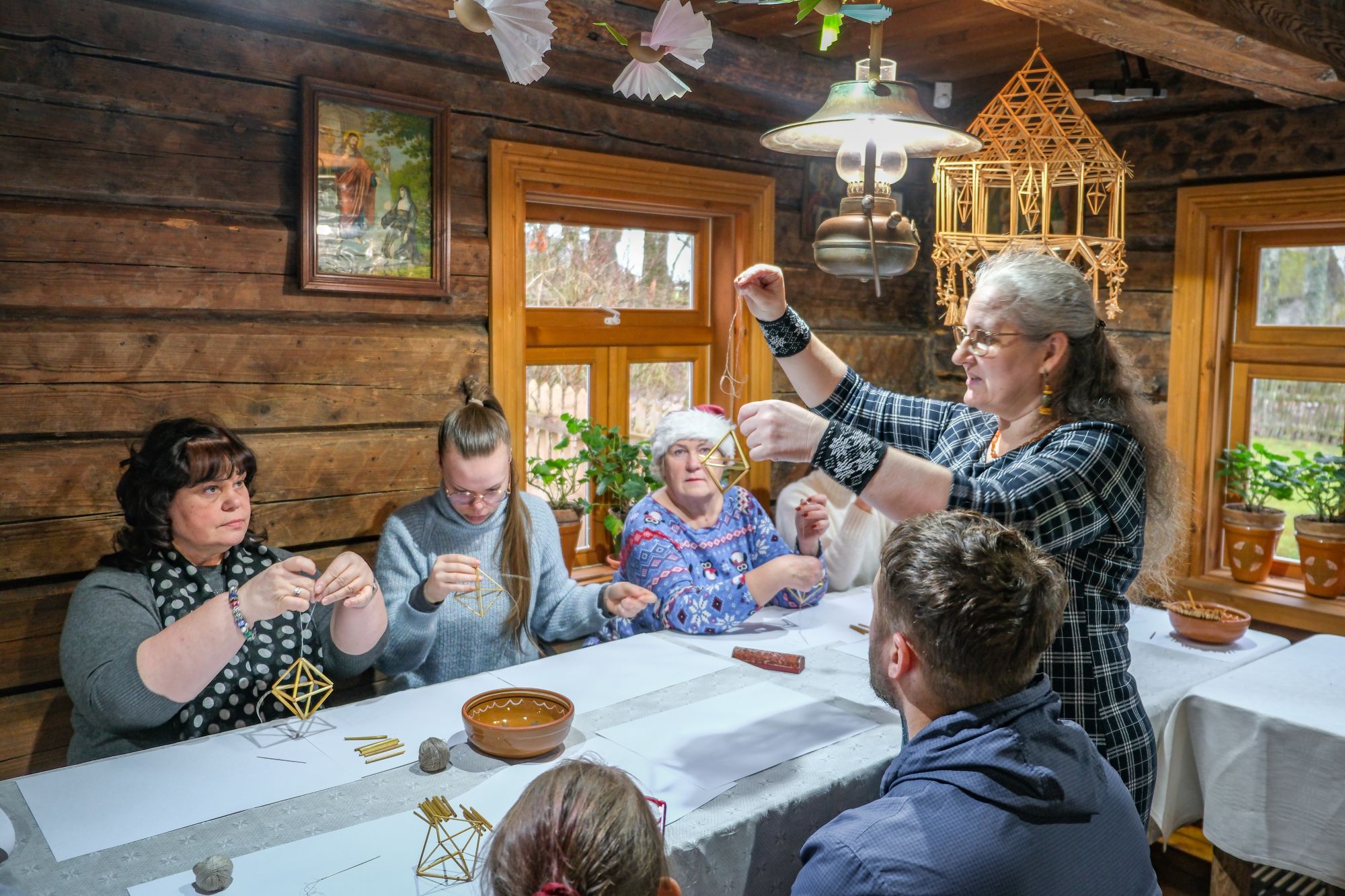 Kuriant žaislus iš šiaudų, daug priemonių nereikia, svarbu žinios, kantrybė, kūrybiškumas. A. Norvaišienė parodė, kaip verti šiaudus, teisingai sujungti kampus, kad dirbtuvių dalyviai galėtų pasidžiaugti, patys sukūrę būsimų švenčių puošmeną.
