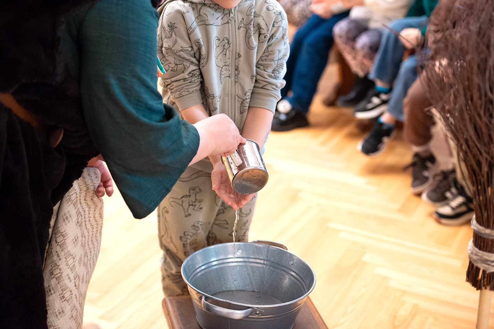 Pasakojimai buvo papildyti netradicinėmis veiklomis: naščiais atnešti vandens, nusiplauti rankeles, išlyginti drabužius, atrinkti sėjai sėklas, pasivaišinti namine duona, kurią iškepė naujaakmenietė Vida Žagarienė.