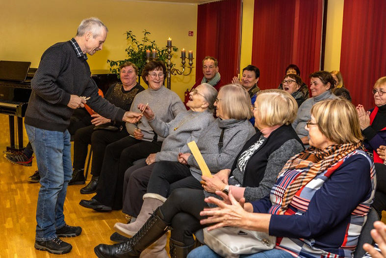 Tautodailininkas Valdemaras Gineika renginio dalyvius apdovanojo paties sukurtomis simbolinėmis prieverpstėmis.