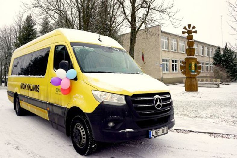 Šiaulių rajono Bazilionų mokyklai-daugiafunkciam centrui perduotas Nacionalinės švietimo agentūros gautas naujas mokyklinis M2 klasės autobusas „Mercedes Benz Sprinter 514CDI“.