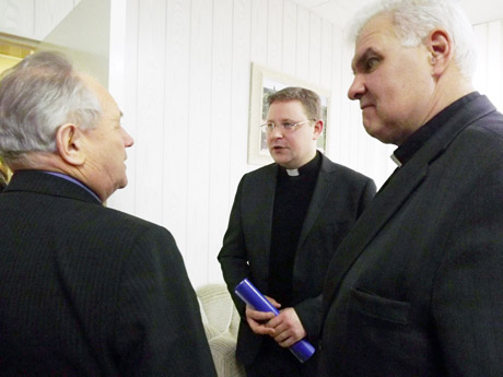 POKALBIS: Po diskusijos dvasininkai kalbėjosi su mero pavaduotoju Izidoriumi Šimkumi.