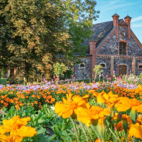 Nors jau baigiasi pirmas rudens mėnuo, Burbiškio dvaras tebeskęsta įvairiaspalvėse gėlėse. Romantišką rudens peizažą tapo ir paskutines šiltas dienas skaičiuoja nenuilstamai žydintys daugiamečiai astrai, elegantiškos rožės, spalvingi kemerai, begonijos, rudeniniai šilokai, aromatą skleidžia kvapusis tabakas, žiedų taures kelia vėlyviai, lyg mažos saulutės geltonuoja serenčiai, medetkos, saulakiai, glausnialapės saulėgrąžos, nasturtos, mėlynuoja meksikinis žydrūnas, melėsai, spalvomis, formų įvairove puikuojasi ir kiti dvarą puošiantys augalai. Kiekvienas žiedas ne tik skleidžia grožį, bet ir saugo praeities pasakojimą – senosios istorijos čia persipina su rudens žavesiu.