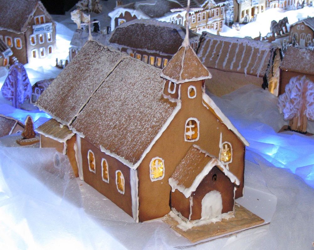 Net keturis juvelyriškai dailius pastatus meduolinei pasakai iškepė joniškietė Kristina Grigaliūnaitė. Ir pradžių ji apsiėmė pagaminti liuteronų bažnyčią, kadaise stovėjusią ant ozo, bet pritrūkus rankų, daliai kepėjų susirgus, vėl atskubėjo į talką ir atvežė ką tik iš kepimo krosnies ištruktas ir papuoštas glajumi buvusią cerkvę, Raktuvės koplyčią bei viešbutį.