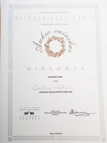 Geriausio apskrities meistro vardą liudija Lietuvos nacionalinio kultūros centro diplomas.