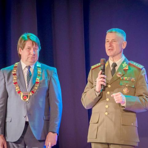 Naujosios Akmenės kultūros rūmuose garbės ženklus „Už nuopelnus Akmenės rajonui“ Akmenės rajono meras Vitalijus Mitrofanovas įteikė Lietuvos kariuomenės vadui Valdemarui Rupšiui ir Akmenės rajono savivaldybės kultūros centro vyriausiajai choreografei, ilgametei šokių būrelių vadovei Birutei Viktoravičiūtei.
