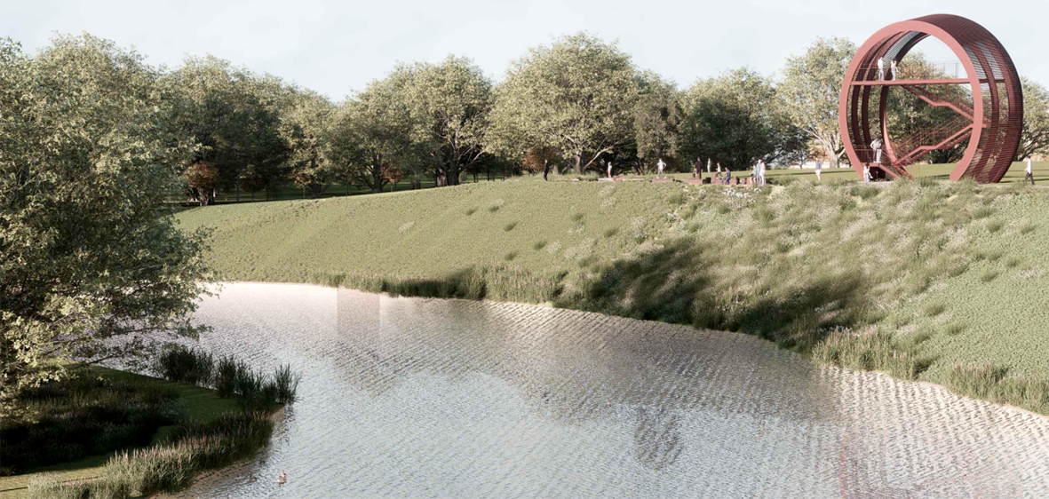 Projektuotojų visuomenei pateikiamuose projektiniuose pasiūlymuose informuojama, kad „projektuojamoje teritorijoje numatyti elementai integruojami į aplinką siekiant užtikrinti funkcionalumą, estetiką ir saugumą. Teritorijoje projektuojami takai, vaikų žaidimų erdvė, poilsio aikštelės, apžvalgos aikštelė, apšvietimas, lankytojų skaičiuotuvas, dviračių remonto ir įkrovimo stotelė bei teritorijos stebėjimo kameros“.