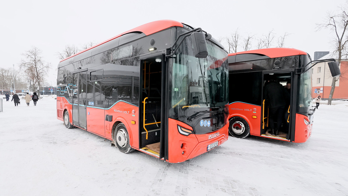 Dabar kuršėniškiai galėjo susipažinti su dviem naujais elektra varomais autobusais, dar du autobusai bus pristatyti vasario pabaigoje.