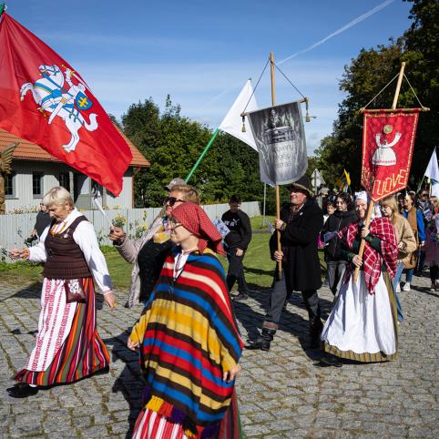 „Žados joties“ raiteliai eisenos priekyje nešė herbinę Kurtuvėnų vėliavą.