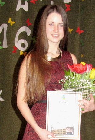 GARBĖ: Šventiniame koncerte už aukštus mokslo pasiekimus Linkuvos gimnazistė Inesa Šlevaitė paskelbta garbės gimnaziste.
