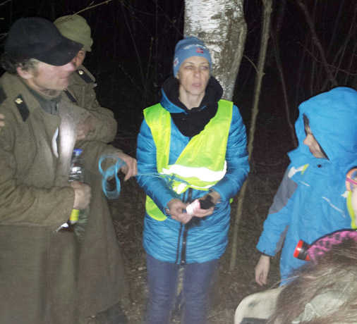 Tolesnis kelias ėjo per mišką. Sutemus visi žygiavo, apsirengę šviesą atspindinčiomis liemenėmis ir „apsiginklavę“ prožektoriais.