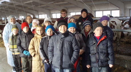 Fermoje vaikus pasitiko vyriausioji zootechnikė V. Ščeponienė ir fermos vedėja V. Mikalajūnienė. Specialistės mokiniams papasakojo apie šiuolaikinių fermų modernizavimą, čia dirbančių žmonių darbą, parodė savo darbo kabinetus.