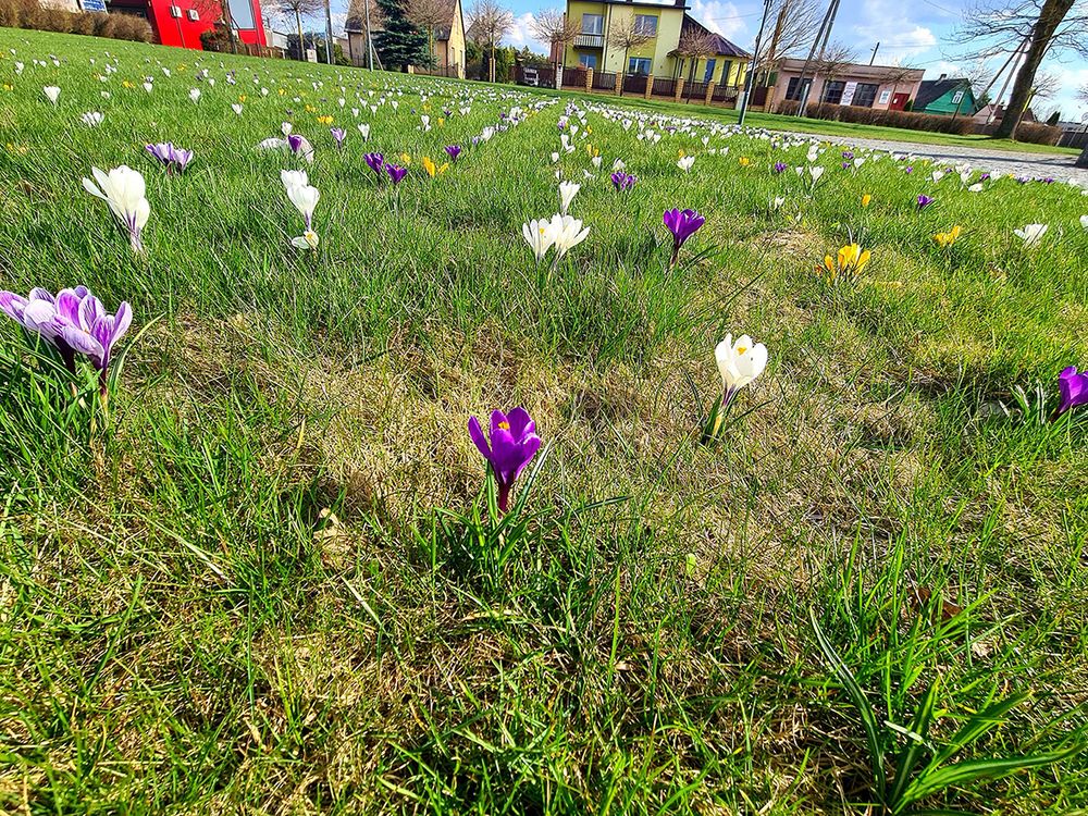 Papilėje, S. Daukanto aikštėje, pražydo krokai.