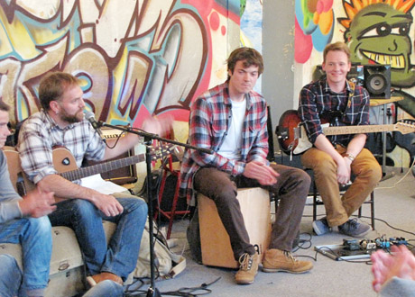 GRUPĖ: Vilniečių grupė „Arbata“ ne tik koncertavo „Jaunimo erdvėse“, bet ir pasakojo apie grupės susikūrimą, bendravo su jaunimu kitomis temomis.
