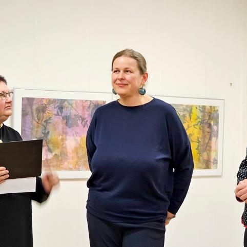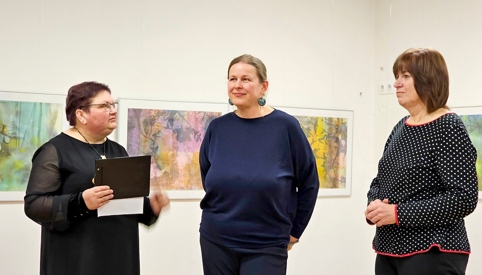 Kovo 6 dieną Šiaulių rajono Bazilionų kultūros centre, prof. Vytenio Rimkaus (1930–2020) salėje, vyko susitikimas su čia veikiančios parodos autorėmis – dailės pedagogėmis akvarelininke Janina Budriene ir karpinių meistre Alma Stugiene.