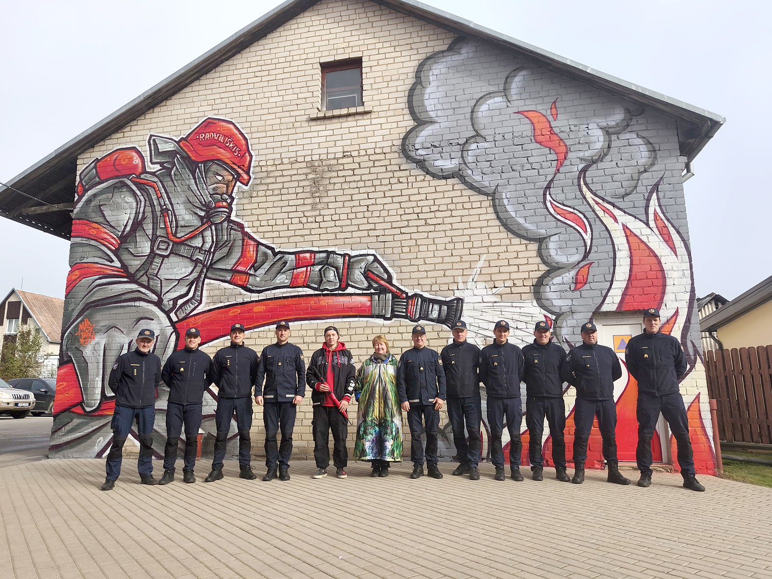 Radviliškio priešgaisrinė gelbėjimo tarnyba pasidabino originaliu piešiniu. Pastato fasadą papuošė menininko Ado Juškos darbas.