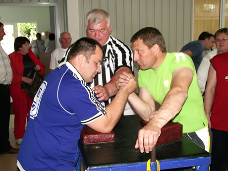 FINALAS: Finalinėje kovoje tradiciškai nugalėjo rajono atstovas Vytautas Alekna (dešinėje). Kairėje – antrosios vietos laimėtojas pakruojietis Marius Užinskas.