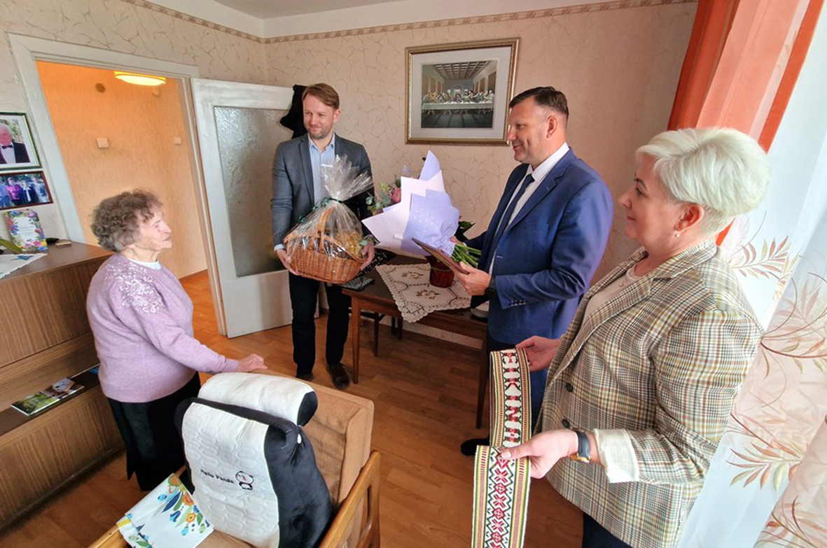 Radviliškietę Eugeniją Bernotienę garbingo 100-ojo jubiliejaus proga aplankė ir pasveikino Savivaldybės meras Kazimieras Račkauskis, Radviliškio miesto seniūnas Justinas Pranys ir seniūno pavaduotoja Vigilija Dževečkienė.