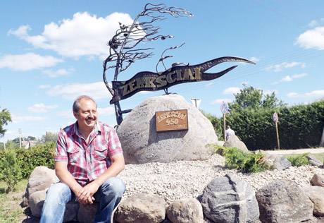 KŪRINYS: Skulptūrinę kompoziciją Žerkščiams sukūręs iš čia kilęs Arūnas Degė sakė, kad lengvai iškalė metalą, o sudėtingiau – pasakyti mintį.