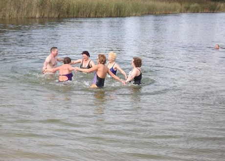 Kuršėnų sveikos gyvensenos klubo „Aušra“ nariai sutvarkyto paplūdimio atidarymą paminėjo maudynėmis, grupės „Wake up“ šokėjos – šokiu.