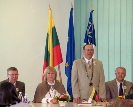 Rajono vadovai svečius priėmė savivaldybės salėje. Čia prisiminta bendradarbiavimo istorija.