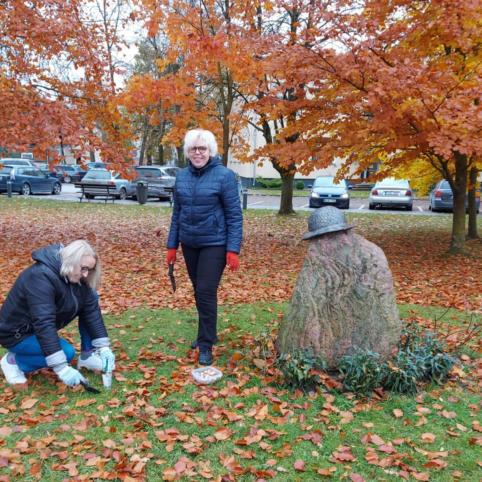 Po gėlių svogūnėlių sodinimo akcijos dalyvės aplankė rašytojos J. Skablauskaitės kapą Joniškio senosiose kapinėse, uždegė žvakeles. Poetė O. Mikalauskienė palaidota Vilkaviškio kapinėse.