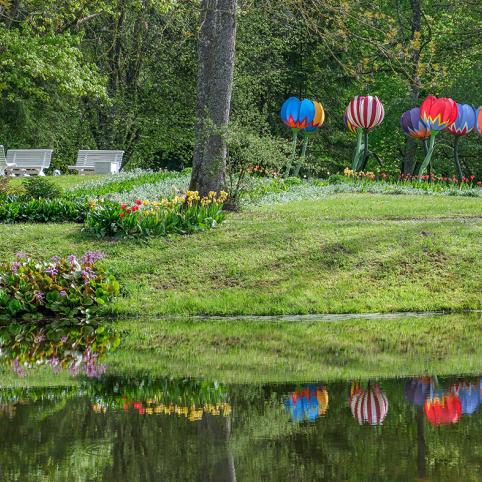 Meniškos tulpės, prikaustančios žvilgsnius magiškais žiedais ir didybe, žaismingai „įaugo“ į Burbiškio dvaro erdves ir atrodo itin įspūdingai.