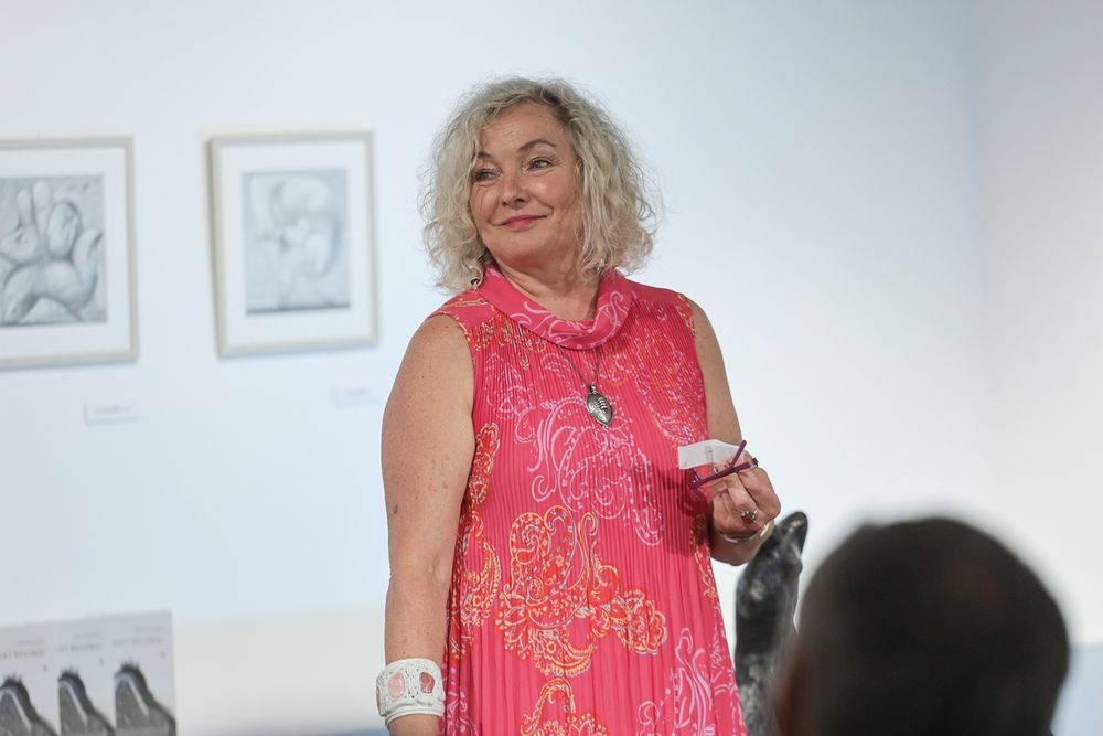Rašytoja kalbėjo apie knygą, paprašyta R. Stonkutės, traukė lapelius su citatomis iš romano, jas perskaičiusi, pakomentavo.