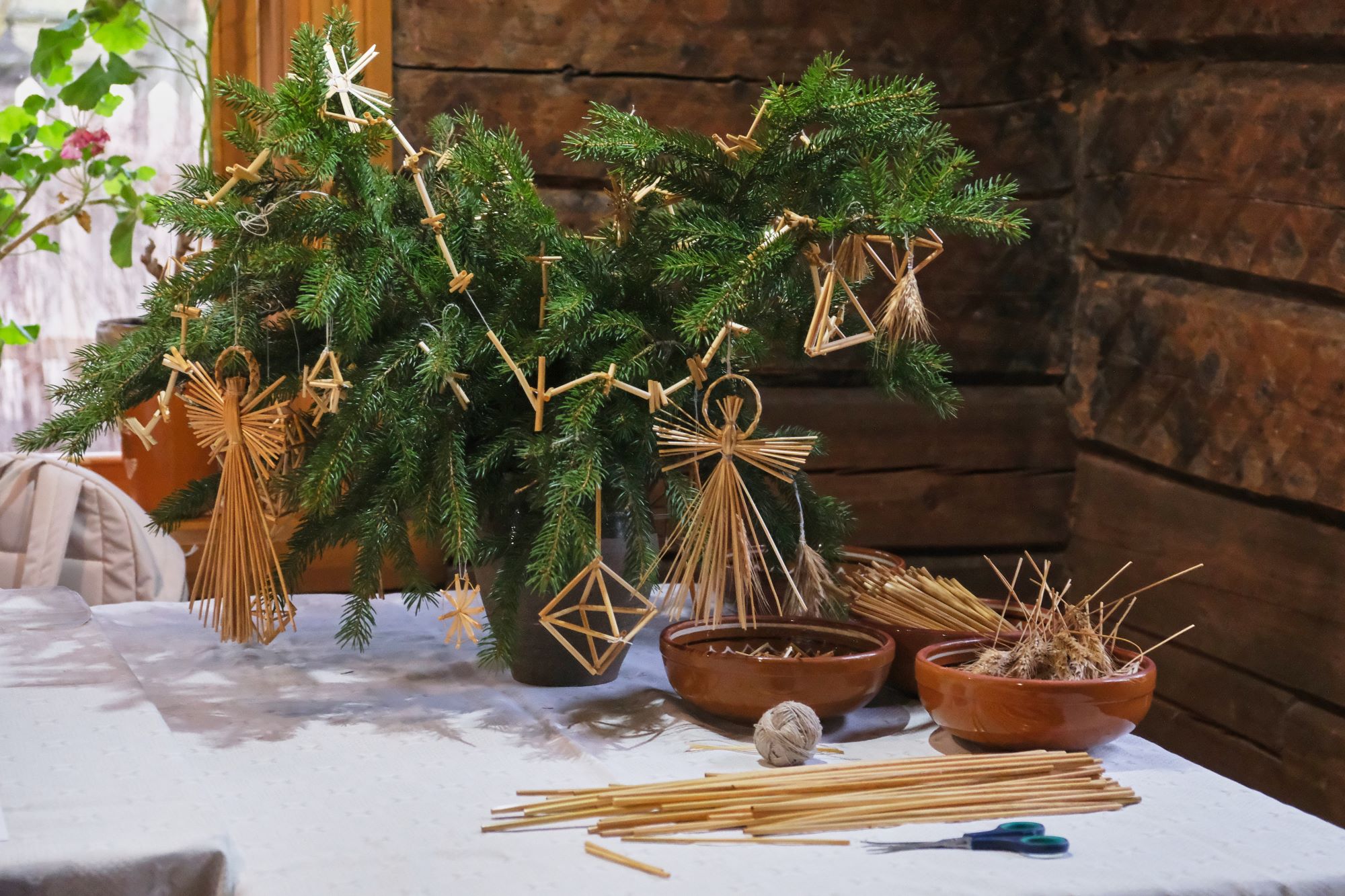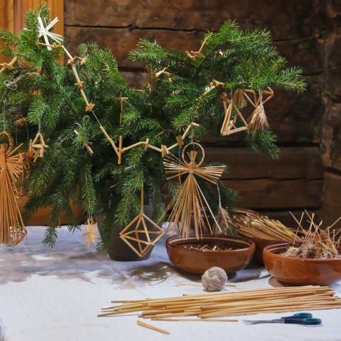 Padedant tautodailininkei, dirbtuvių dalyviai iš gamtos gėrybių mokysis pasidaryti tradicinių žaisliukų, girliandų. Reikalingomis medžiagomis ir priemonėmis bus pasirūpinta, tad dirbtuvių dalyviams beliks mėgautis kūryba. Įdėjus kruopštumo, kantrybės, šiaudai taps trapaus grožio puošmenomis: įvairiomis geometrinėmis formomis, saulutėmis, žvaigždutėmis, paukšteliais, angeliukais, kurie netrukus papuoš žaliaskares.