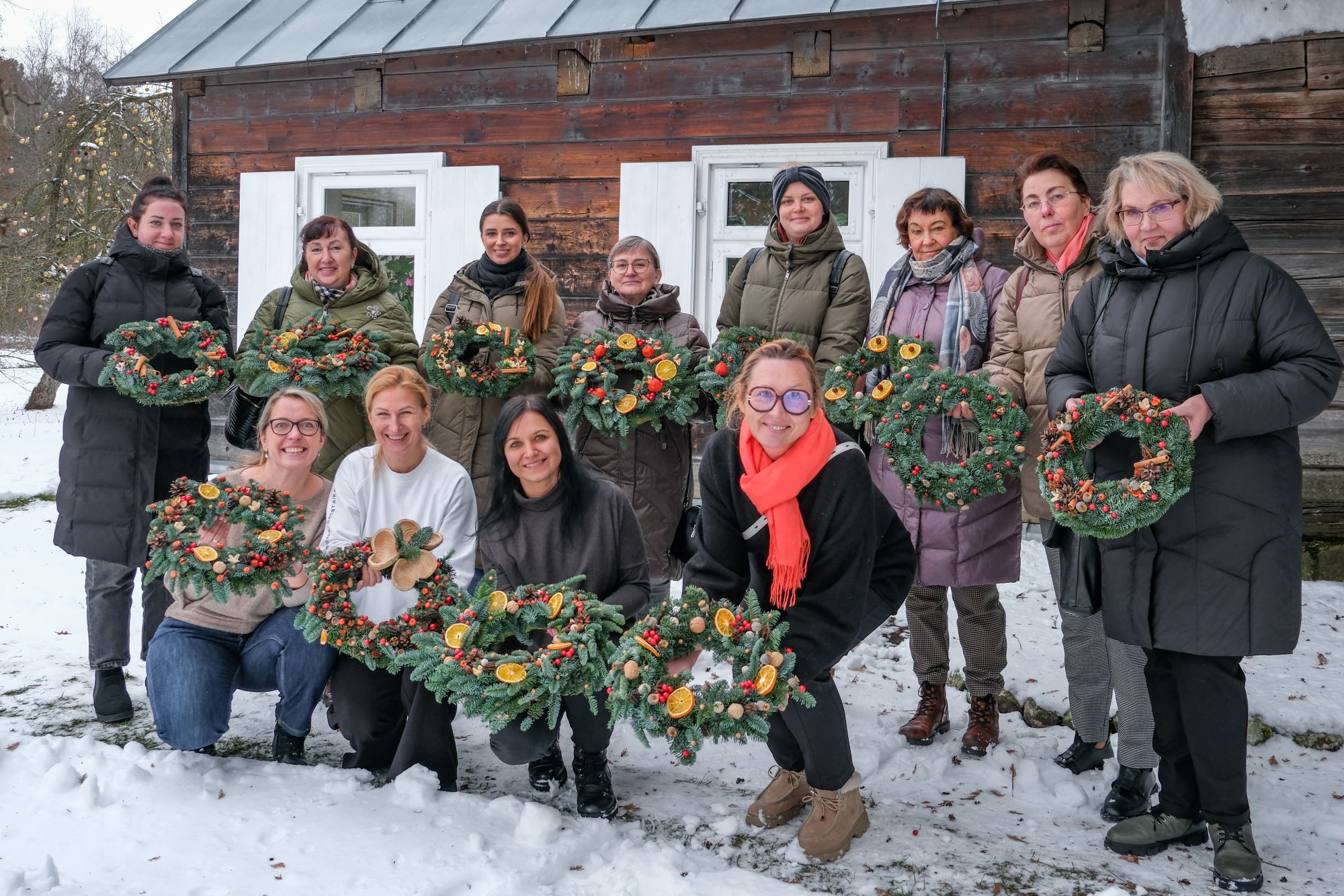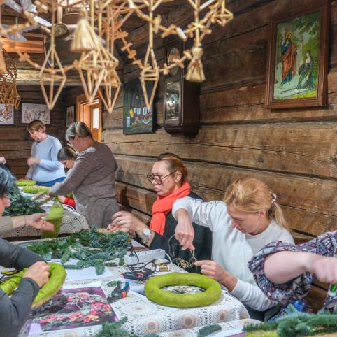 Daugyvenės kultūros istorijos muziejaus-draustinio Kleboniškių kaimo buities muziejuje (Radviliškio r.) vykusiose edukacinėse dirbtuvėse nupinti advento vainikai.