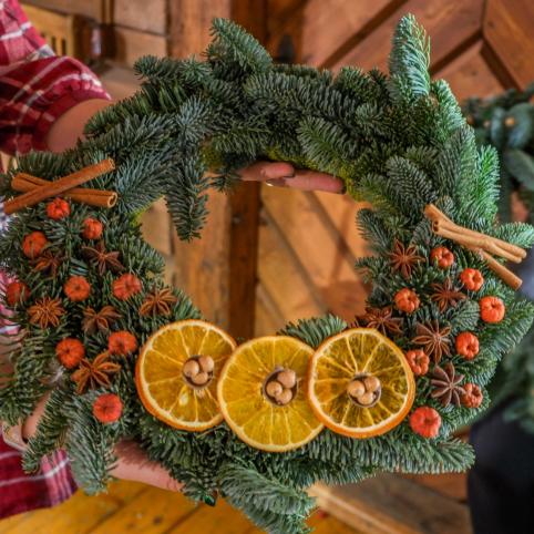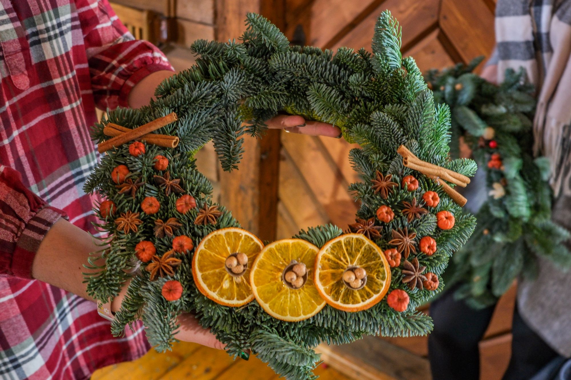 Senojoje gryčioje persipynė ne tik Kalėdų, bet ir vasaros bei rudens aromatai – muziejininkai dirbtuvių dalyviams iš anksto paruošė gamtos dovanų, puikiai tinkančių vainikams puošti. Puodynėse, pintinėlėse sugulė giliukai, kankorėžiai, džiovintos aguonų galvutės, riešutai, ryškiaspalvės dumplūnės ir kitų kraštų gėrybės – kvapnios cinamono lazdelės, džiovintų citrusinių vaisių riekelės, anyžių žvaigždutės bei kitos dekoracijos.