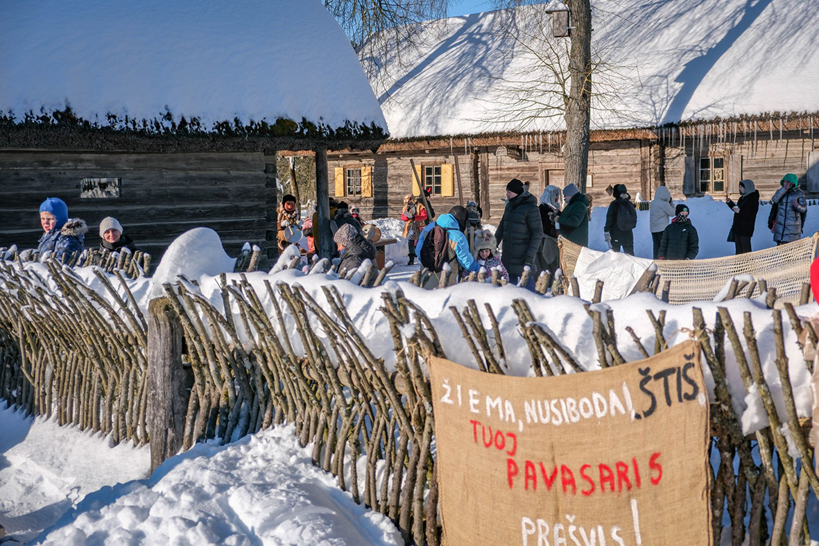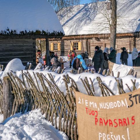 „Žiema, nusibodai, štiš, tuoj pavasaris prašvis!“ – skelbė šūkis ant tvoros, primindamas, kad šiemet varant žiemą teks pasidarbuoti iš peties, nes sniego pusnys kone dangų remia, o tvoros nuo šalčio pokši.