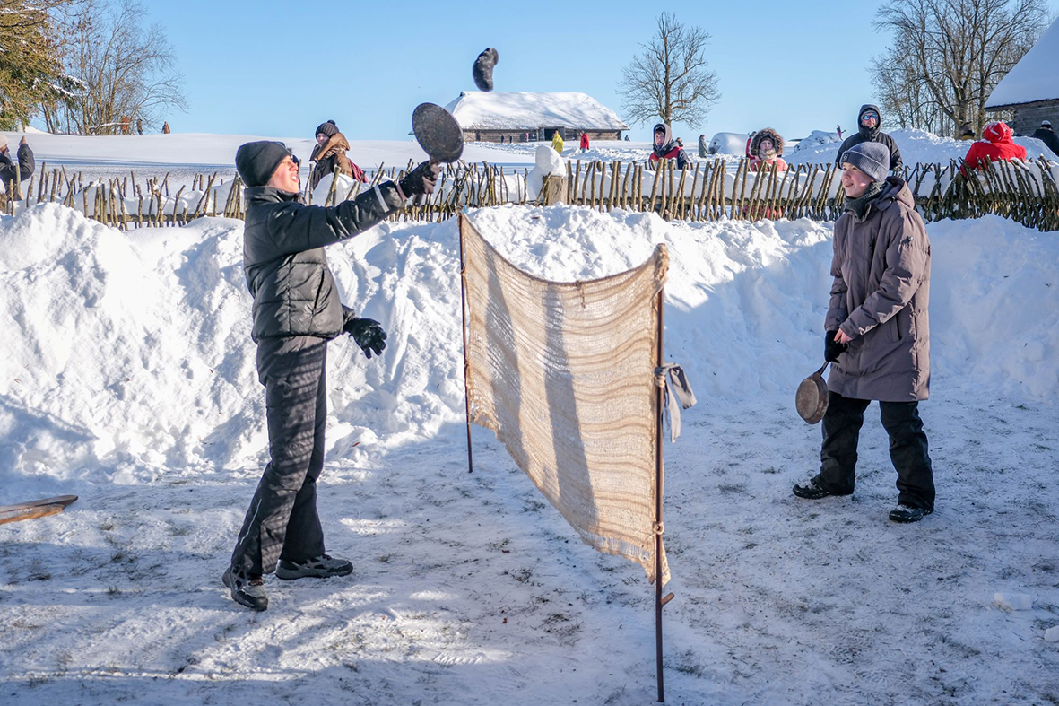 O sočiai pavalgius norisi žaidimų – Užgavėnių dalyviai nepraleido galimybės pasimėgauti visais žiemos malonumais: slidinėjo, čiuožinėjo, vartėsi sniege, dūko, suko ratelius, pjovė rąstą, žaidė keptuvių „tenisą“, stypčiojo kojūkais, varžėsi šmaikštumu ir vikrumu.