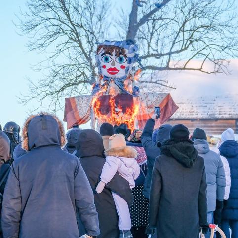 Šventę užbaigė sudeginta Morė – liepsnos liežuviai suskubo naikinti Užgavėnių simbolį kartu su visomis negandomis ir bėdomis.