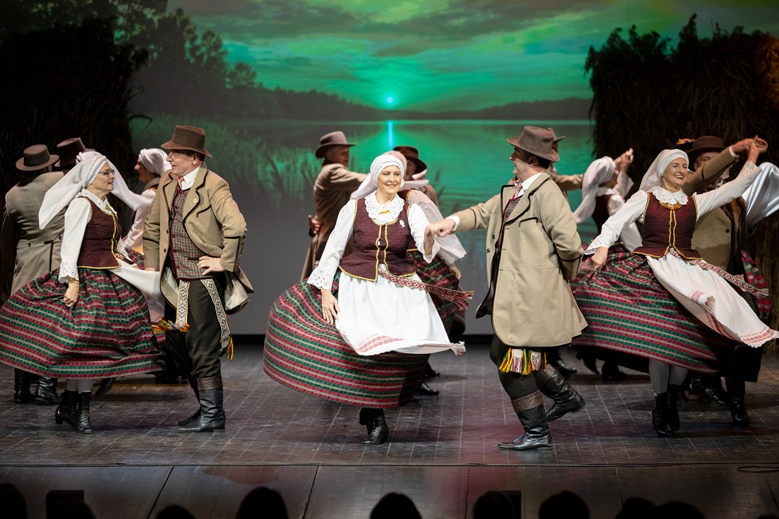 Šokiais ir dainomis sukaktuvininkus sveikino Palangos kultūros centro vyresniųjų liaudiškų šokių grupė „Banguolis“ (vad. Eglė Baltriukienė), Šiaulių kultūros centro liaudiškų šokių grupė „Vajaunas“ (meno vad. Romualdas Laugalis), Baloži kultūros centro vyresniųjų liaudiškų šokių grupė „Baloži“ (vad. Mārtiņš Ezeriņš), Širvintų kultūros centro vyresniųjų liaudiškų šokių grupė „Viesula“ (vad. Loreta Putvinskaitė-Vičienė), Visagino kultūros centro vyresniųjų liaudiškų šokių grupė „Gervė“ (vad. Ugnius Cikanas), Vilniaus miesto liaudiškos muzikos ir šokių ansamblis „Vilnis“ (meno vad. Rimutė Zaleckaitė), Šiaulių miesto Jovaro progimnazijos ir Didždvario gimnazijos vaikų ir jaunimo tautinių šokių ansamblis „Šėltinis“ (meno vad. Violeta ir Romualdas Laugaliai, Greta Petrauskė, Germanas Urbonavičius) – būtent šiame kolektyve glūdi „Šėvulio“ ištakos.