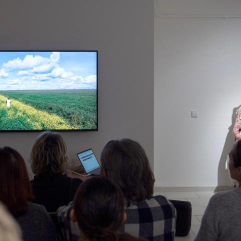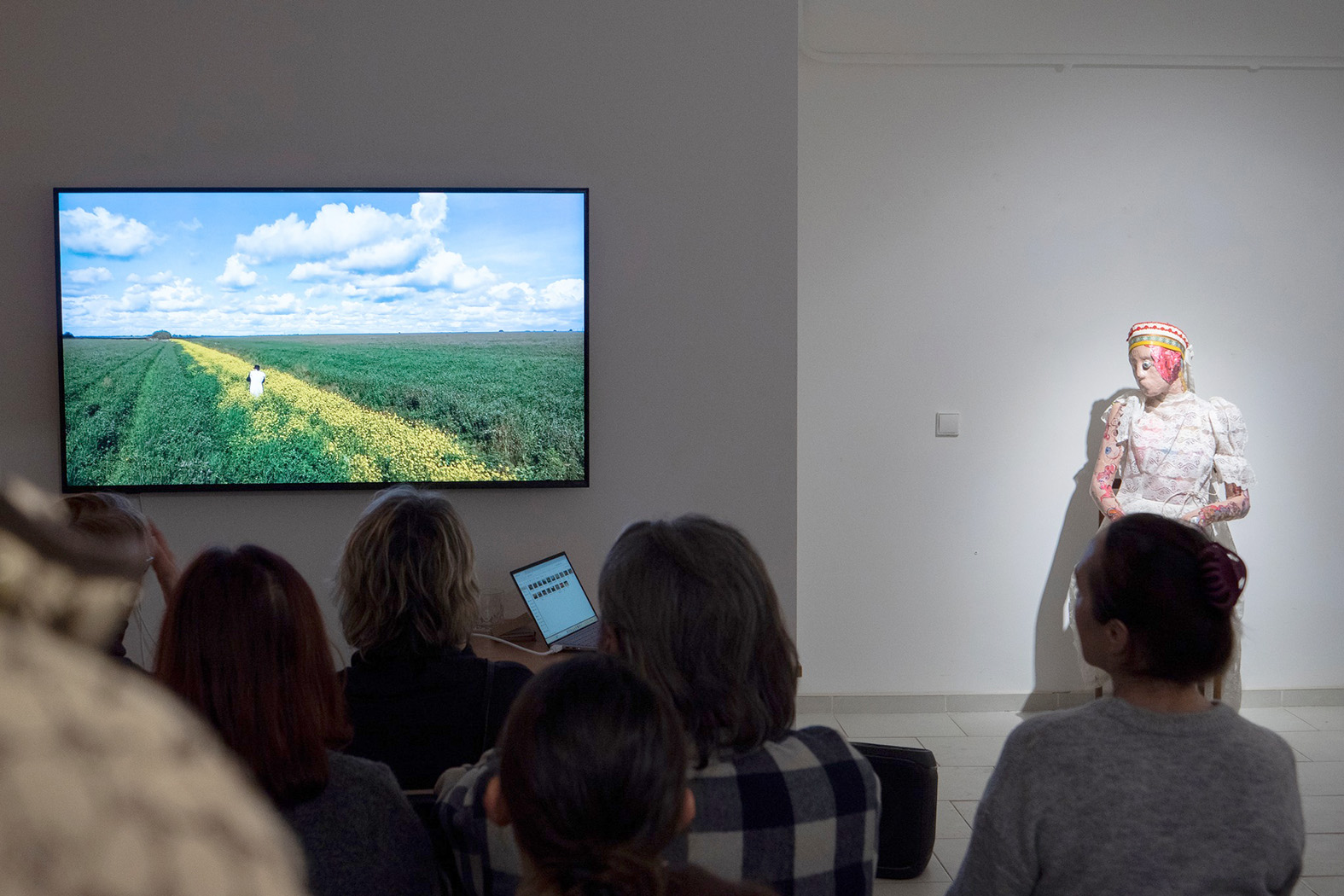 Renginio dalyviai iš pirmų lūpų išgirdo apie kūrybinę laboratoriją – filmavimo subtilybes. Pasakojimą papildė rekvizitai, akvarele sukurti eskizai bei videoperformansų scenarijai.