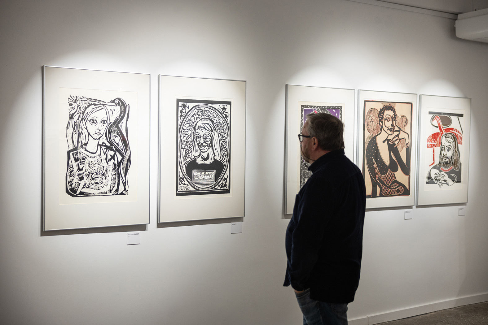 Parodoje eksponuojami grafikos meistrės linoraižinių ciklai, estampų kolekcijos bei monumentalūs piešiniai, kurių mastelis prilygsta freskoms ar vitražams.