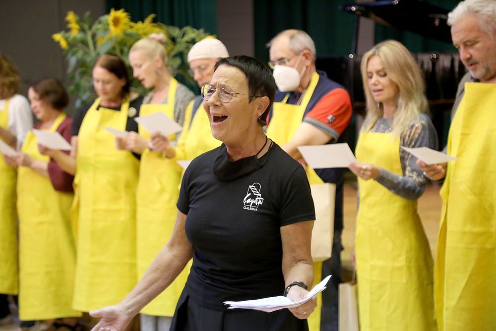 Šių metų festivalio tema – „Geltona ir...“, tad salė buvo išpuošta geltonomis saulėgrąžomis. Geltonas prijuostes gavo 17 tradicinio plenero dalyvių – 16 dailininkų iš Lietuvos, Latvijos ir Nyderlandų bei menotyrininkė Danutė Zovienė.