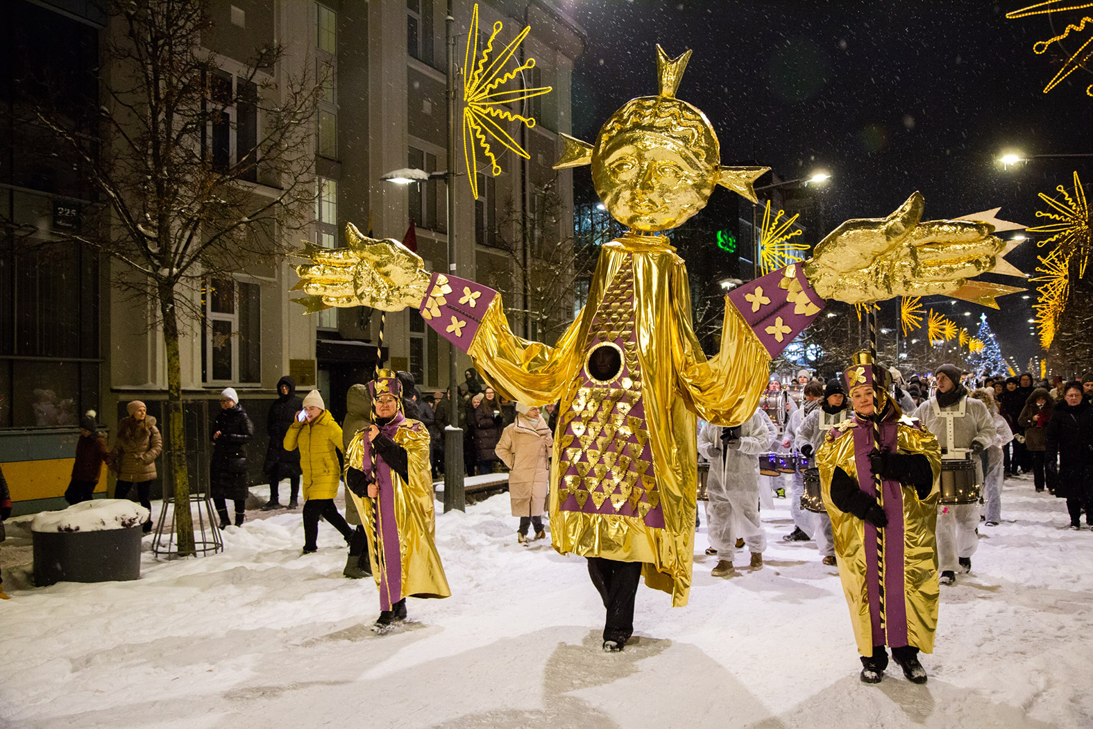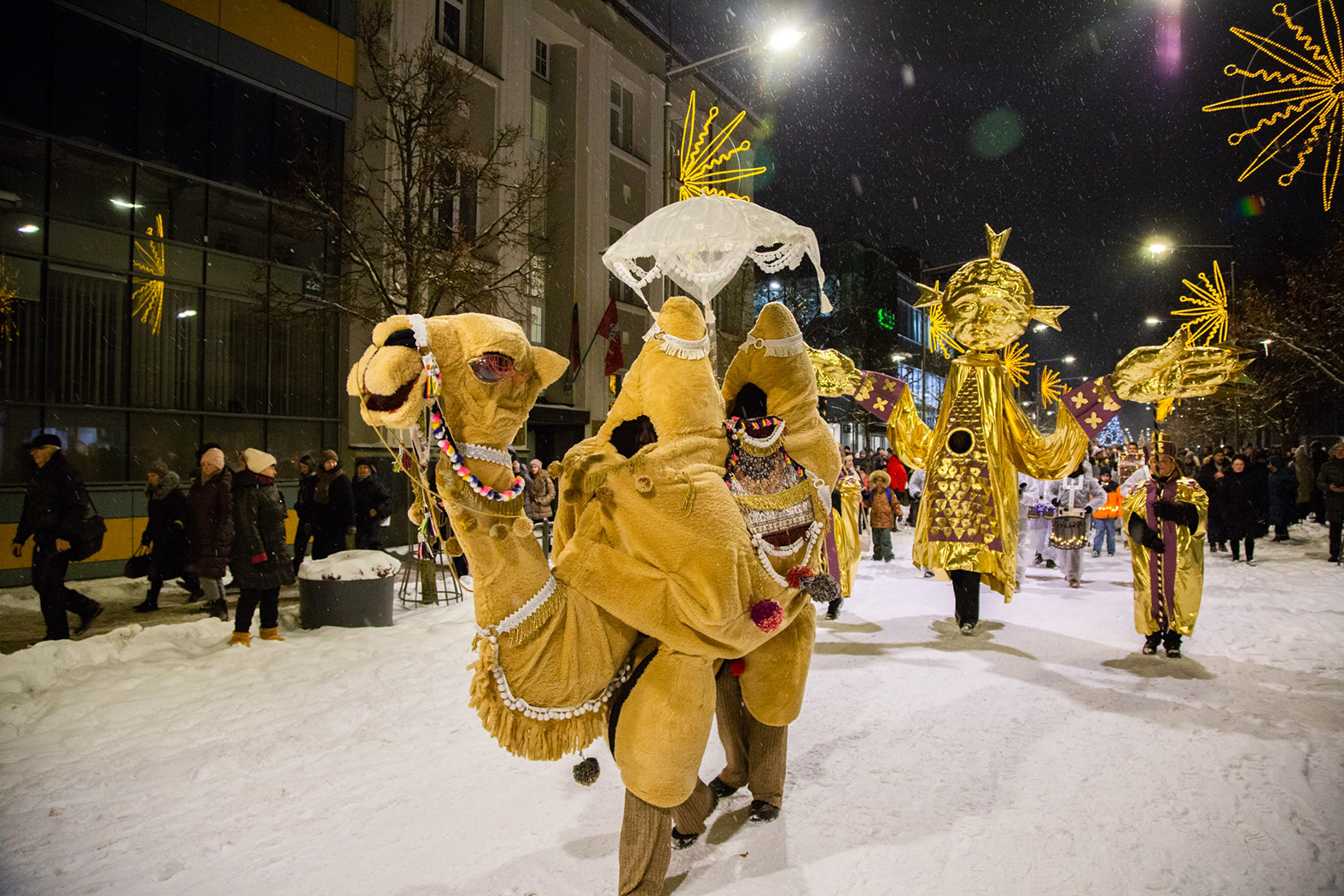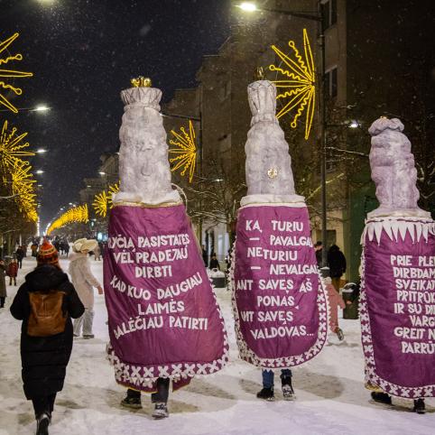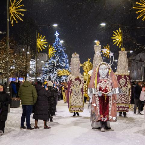 Sausio 6-osios vakarą Šiauliuose keliavo teatralizuota Trijų Karalių eisena. Praeivius sveikino beveik trijų metrų aukščio Kasparas, Merkelis ir Baltazaras, avelės, asiliukas, jautukas, kupranugaris bei 2,5 metro aukščio Saulė. Kelią eisenai rodė Aušrinė Žvaigždė. Įspūdingus šventės personažus sukūrė Šiaulių kultūros centro dailininkė Reda Uogintienė.