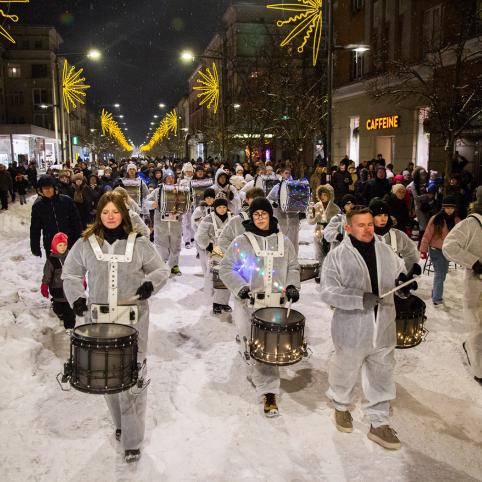 Smagius muzikinius ritmus mušė eiseną lydėjusi grupė „Ritmas kitaip“. Keliaunininkai kelionę pradėjo nuo Šiaulių kultūros centro, tęsė Kaštonų alėja ir Vilniaus gatvės pėsčiųjų bulvaru, stabtelėjo paskambinti Dariaus Augulio skulptūros „Meilės varpas“ varpu. Tilžės gatve eisena pasiekė Prisikėlimo aikštės prakartėlę.