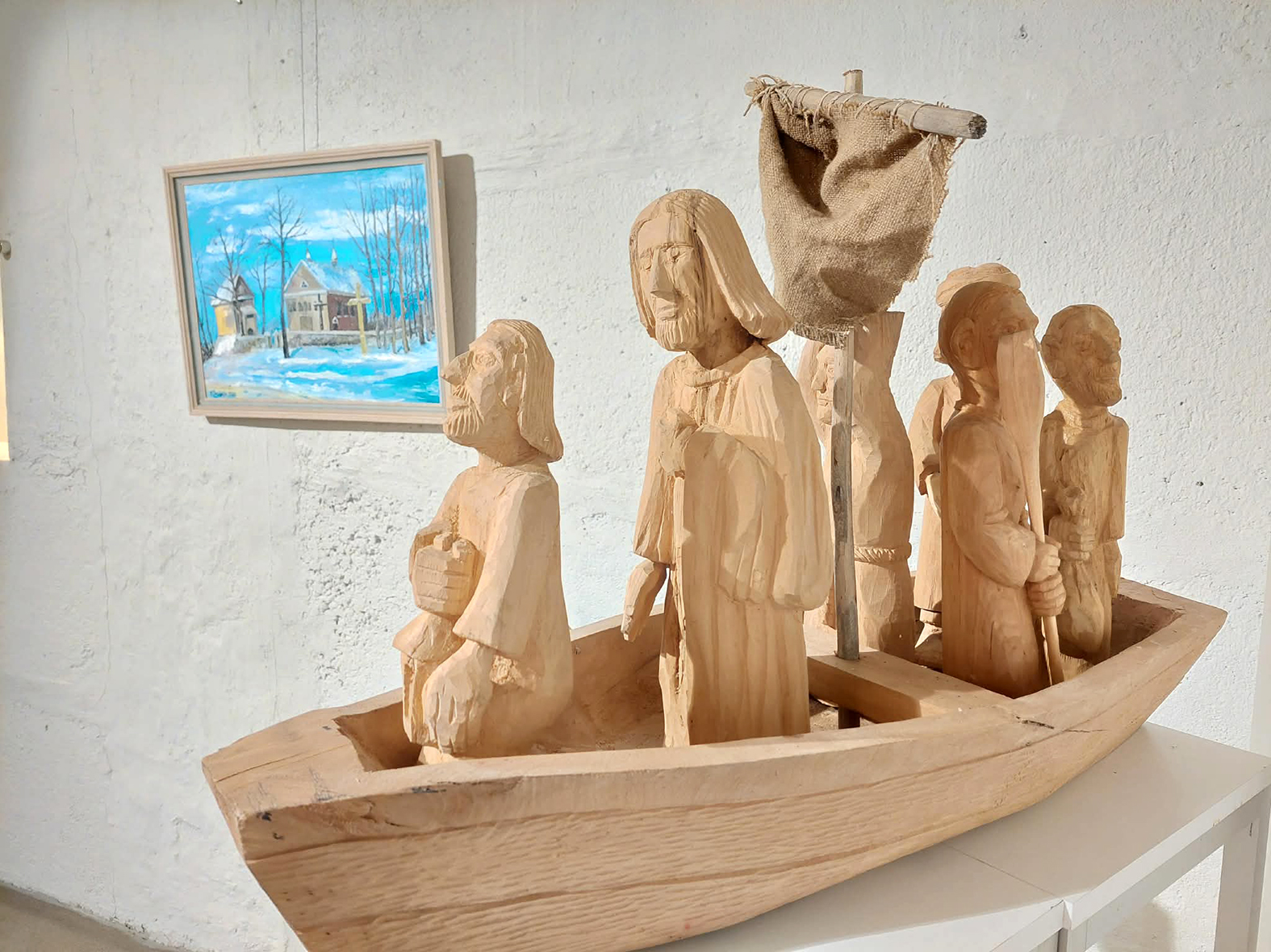 Skulptūrose atgyja ir gyvenimiški siužetai, ir šventųjų gyvenimai. Eksponuojami tapybos darbai – peizažai – daugiausia sukurti pastaraisiais metais.